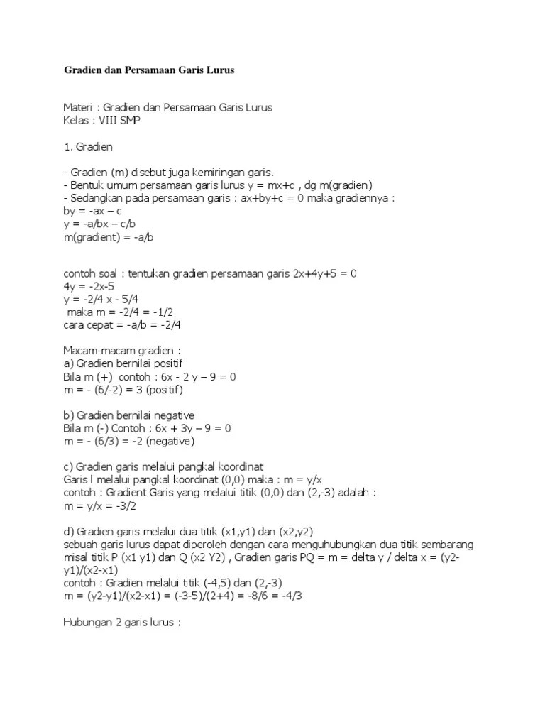 1 contoh soal matematika kelas 8 persamaan garis lurus 1. Viii (delapan) / i (satu). ( persamaan garis lurus ). Matematika smp tentang pembelajaran persamaan garis lurus di kelas viii . Wachid hasyim mata pelajaran :